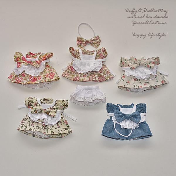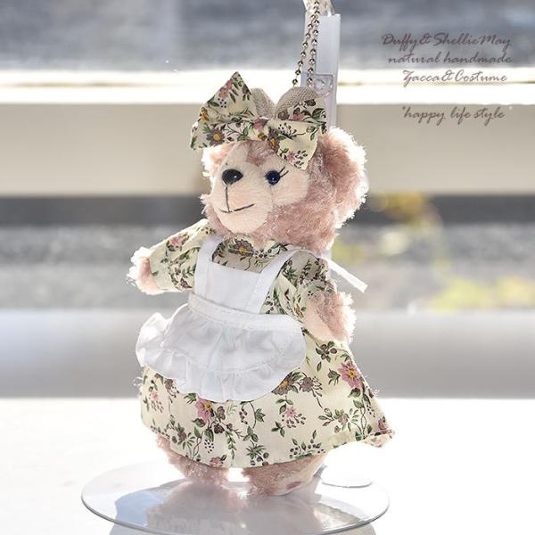 ダッフィー*シェリーメイコスチューム★バッジサイズ★リバティ柄ワンピース・白エプロンセット・wp73-b【ぬいぐるみは含まれません】【洋服】
