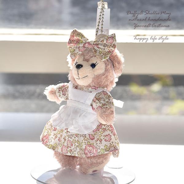ダッフィー*シェリーメイコスチューム★バッジサイズ★リバティ柄ワンピース・白エプロンセット・wp75-b【ぬいぐるみは含まれません】【洋服】