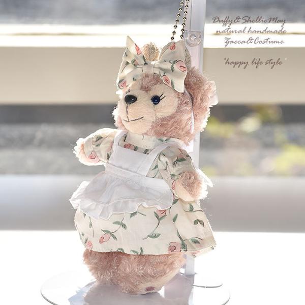 ダッフィー*シェリーメイコスチューム★バッジサイズ★リバティ柄ワンピース・白エプロンセット・wp76-b【ぬいぐるみは含まれません】【洋服】