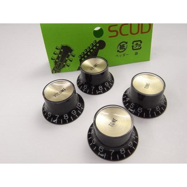 ■【新品・4個組】KB-130VGI/130TGI・SCUD・ハットノブ・ブラック(ゴールドTOP)インチ規格・エンボス・レスポール・ギブソン