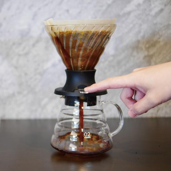 コーヒー粉をお湯に浸漬してから抽出するドリッパー。スイッチを押してドリップするので、どなたにでも均一な抽出が可能です。