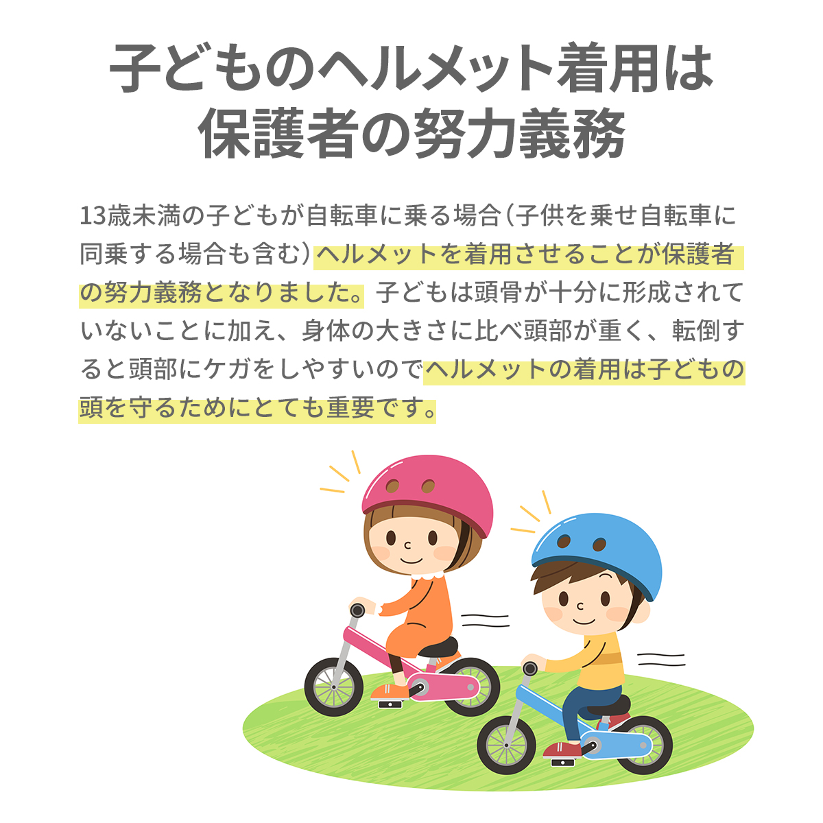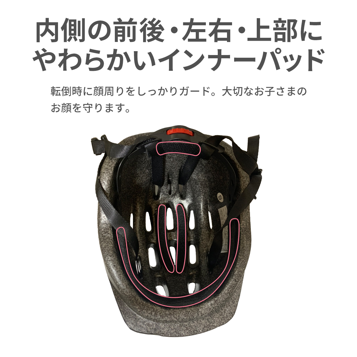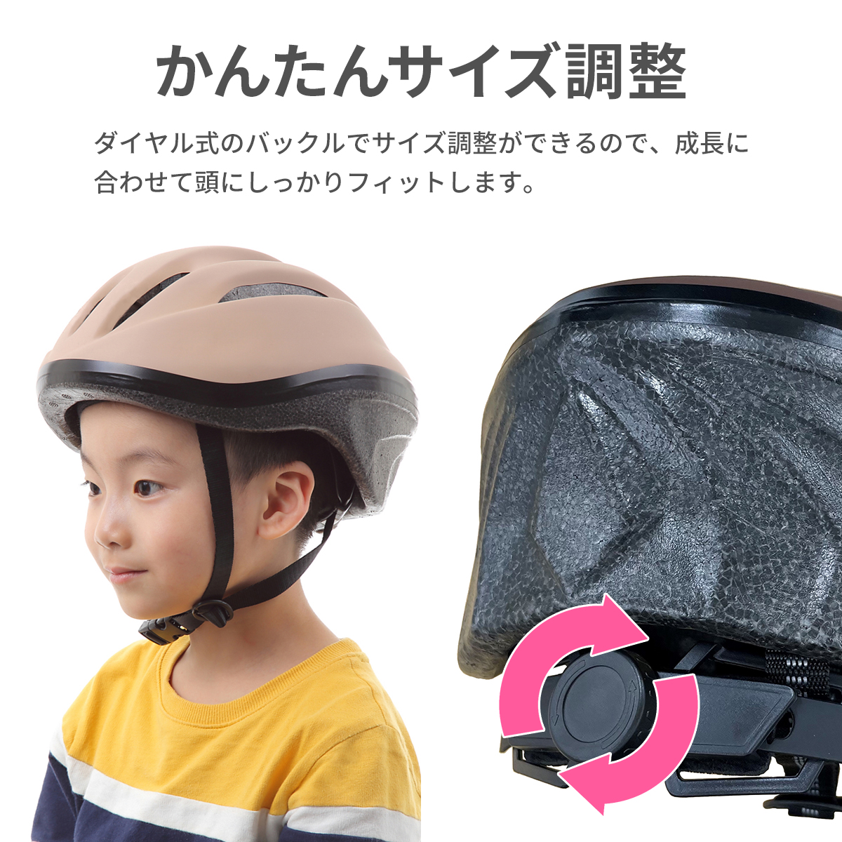 自転車に乗る時の習慣に!キッズヘルメットMサイズ☆軽くて丈夫なソフトシェルを採用!ワンタッチバックルのあごひもで、自転車で出かける時にさっと被っていけます!アジャスターダイヤル付きなので、簡単にサイズ調整ができます!厳しい試験をクリアしたヘルメットなので、安心!【子供のヘルメット着用は保護者の義務】13歳未満の子供が自転車に乗る場合(子供を乗せ自転車に同乗する場合も含む)、ヘルメットを着用させることが保護者の努力義務となりました。子供は頭骨が十分に形成されていないことに加え、身体の大きさに比べ頭部が重く、転倒すると頭部にケガをしやすいので、ヘルメットの着用は子供の頭を守るためにとても重要です。