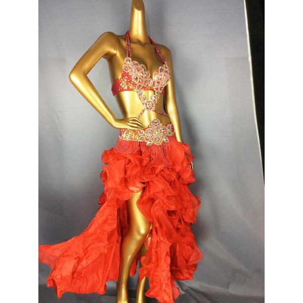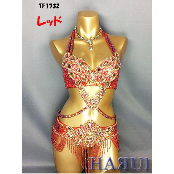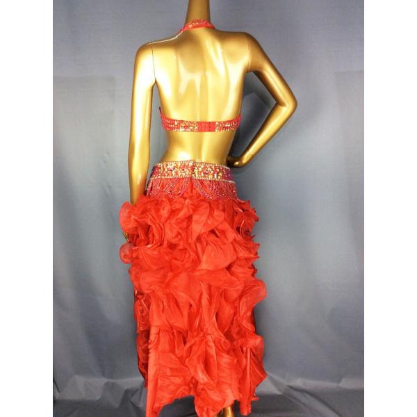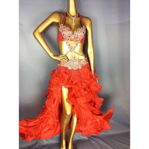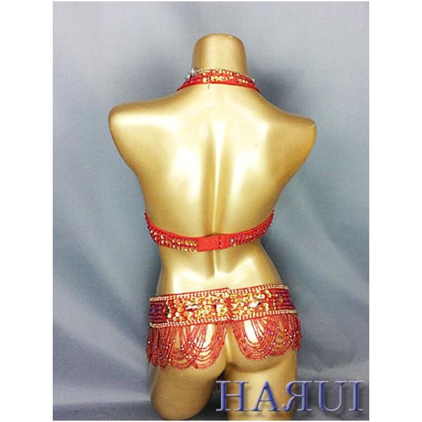 ベリーダンス 衣装 Vドロップ ブラ ベルト 上下2点 セット レッド ワンランクUP