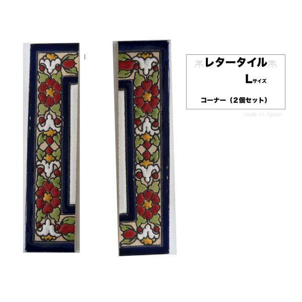 表札 おしゃれ タイル Lサイズ スペイン製 手作り DIY コーナータイル 2枚セット 爆買