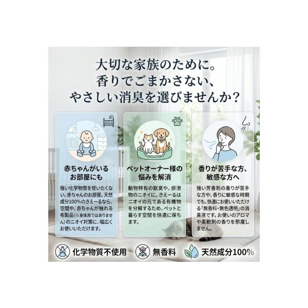 きえーる 室内用 4L 消臭剤 消臭液 室内消臭 生活臭 トイレ 生ゴミ タバコ ペット 無香料 天然成分100% 大容量 日本製