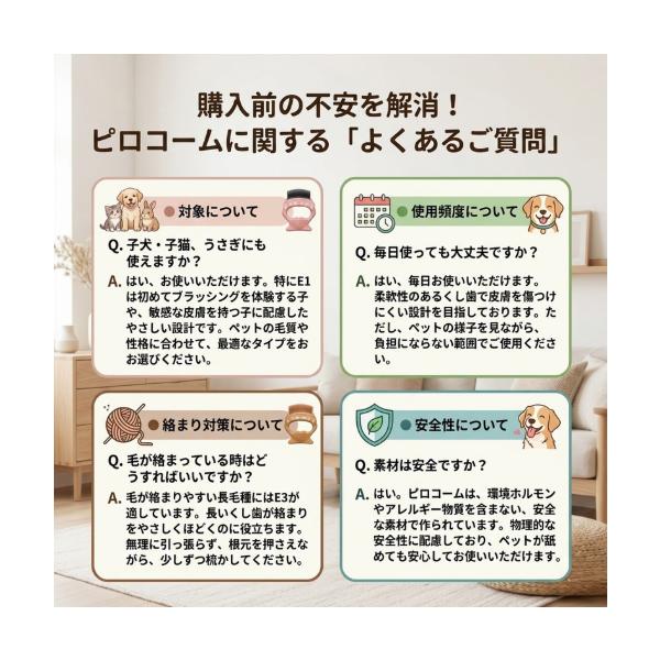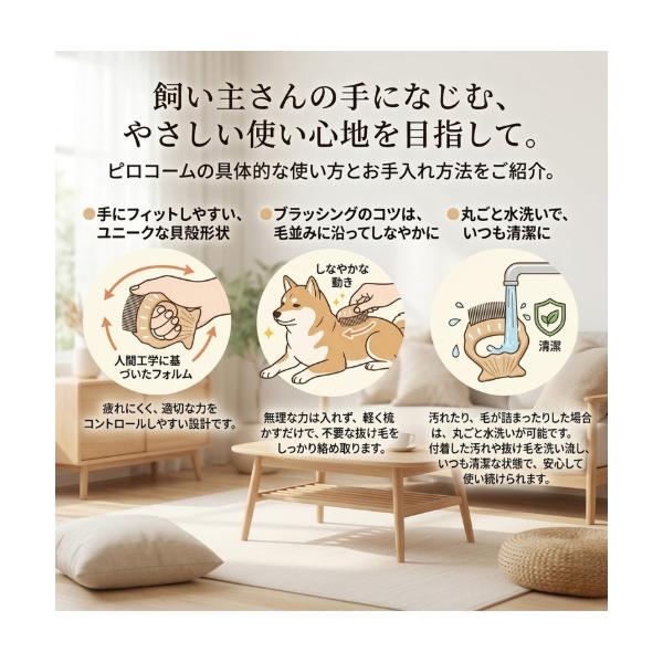ピロコーム Philocomb E2 かため。短毛の中型犬や大型犬の被毛に使いやすい、日本製のグルーミングコームです。コシのあるくし歯で抜け毛をしっかり取り除きながら、皮膚に当たりにくい設計でやさしくお手入れしやすいのが特長。換毛期の抜け毛対策をしっかりしたい方や、ブラッシング後の毛の後始末をラクにしたい方におすすめです。