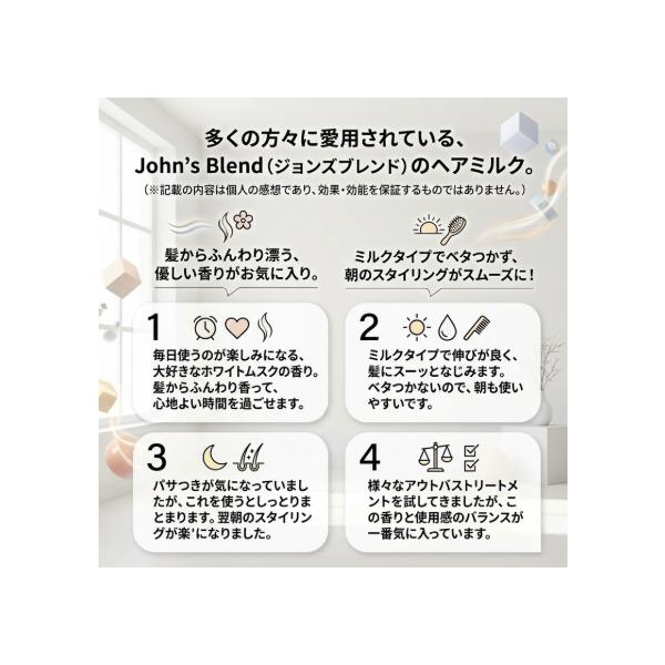 ジョンズブレンド ホワイトムスク ヘアミルク 120mL 洗い流さないトリートメント アウトバス 保湿 しっとり まとまる ダメージ補修 植物エキス 植物オイル