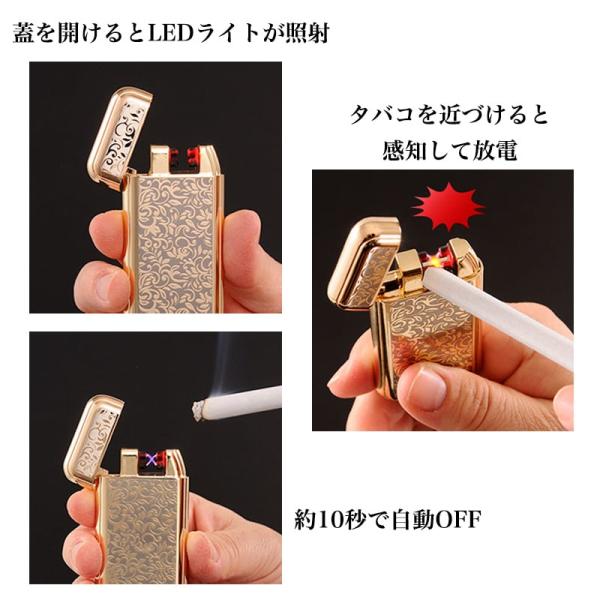 USBライター 充電式 センサークロス SGアラベスク オイル ガス 不要 自動消火 エコ ハイテク おしゃれ ギフト かっこいい メンズ