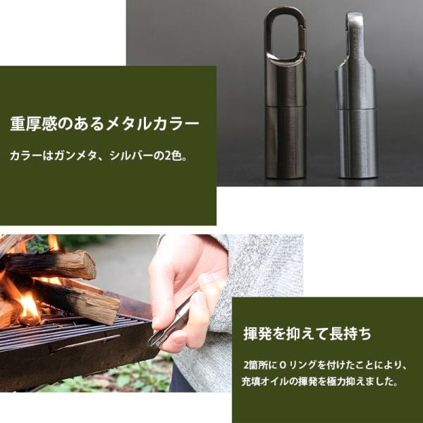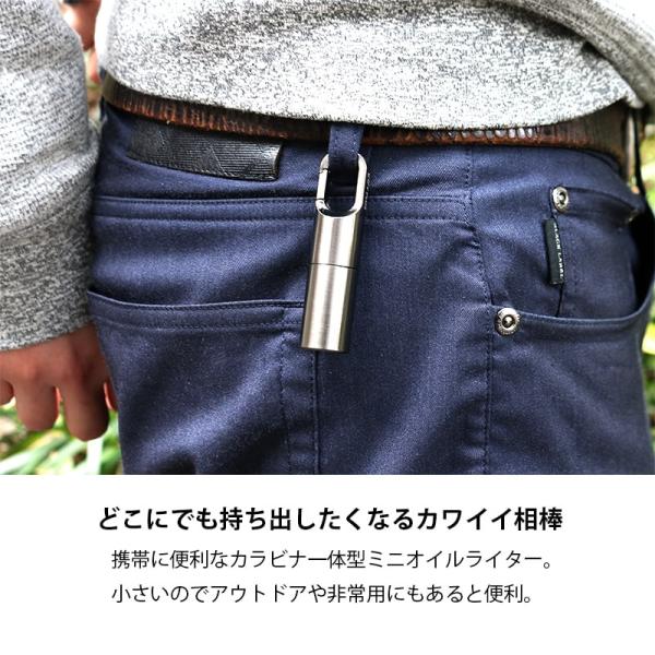 携帯に便利なカラビナ一体型のミニオイルライターです。