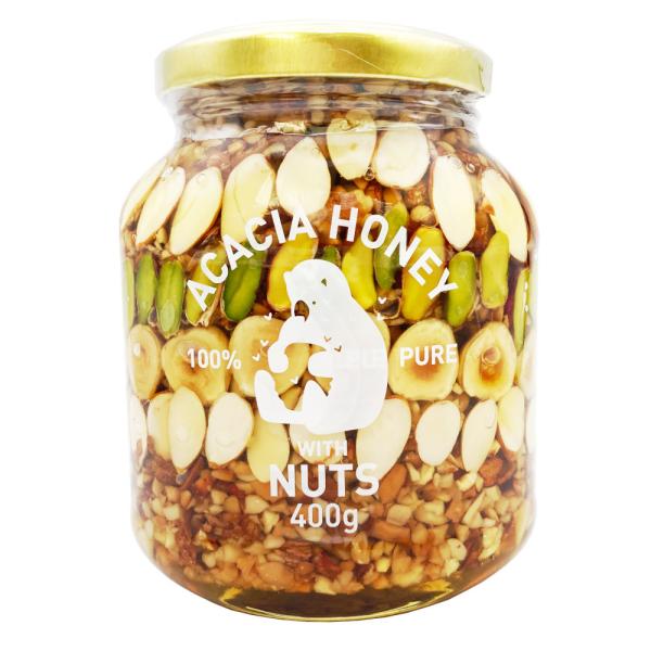 4種のナッツの蜂蜜漬け 400gx1個 ハニーナッツ アカシアはちみつ はちみつ漬け ハチミツ ナッツ Honey with Nuts 送料無料