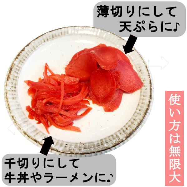 お好みに応じて使える、丸ごとそのままの紅しょうが漬けです。