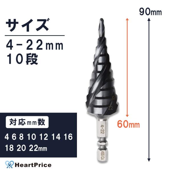 『インボイス対応 日本仕様 』3枚刃 ステップドリル 4-22mm 六角軸 TiALNコート タケノコ 穴あけ ステンレス プラスチック 木工 アクリル 塩ビ 木材 アルミ
