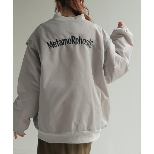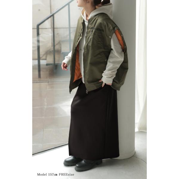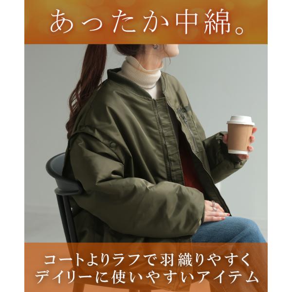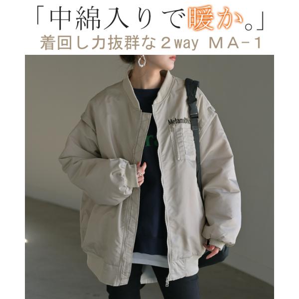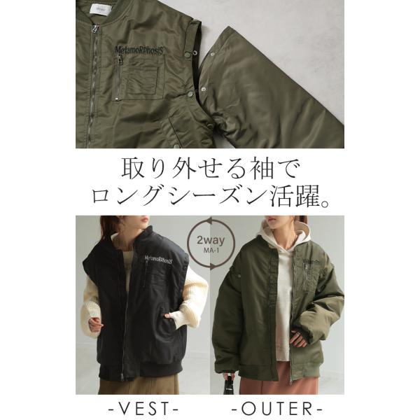 ジャケット ベスト 2way 中綿 ディース アウター ロング ロングアウター MA-1 ロゴ 刺繍 無地 長袖 ノースリーブ ジレ ボリュームスリーブ リブ 男女兼用