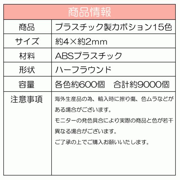 レジン ABS プラスチック製 カボション 9000個入り 半円 ミックスカラー 4x2mm
