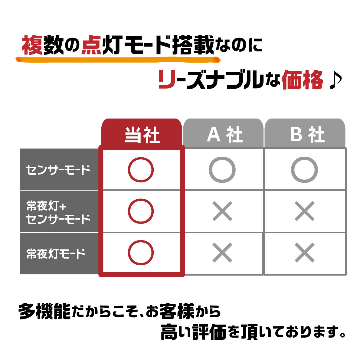 ※暗くないと点灯しません。