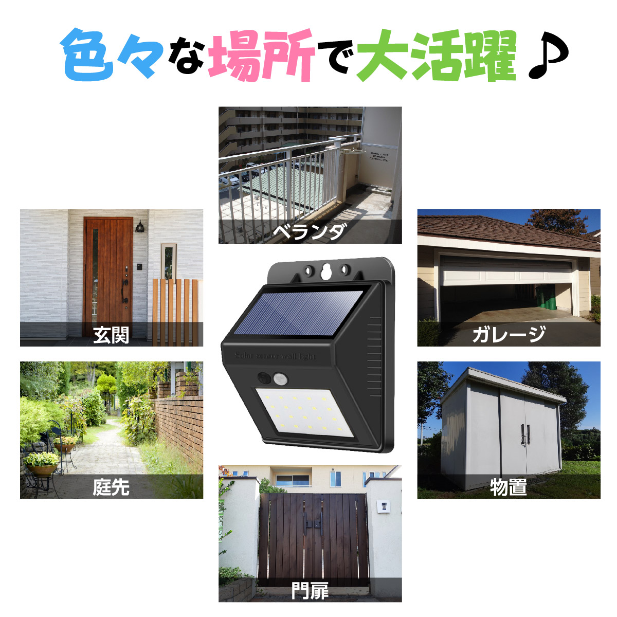 ソーラーライト 2個セット 屋外 センサーライト 人感 室内 LED 玄関 庭 人感センサー 充電式 ソーラー式 防水 明るい 両面いテープ付き