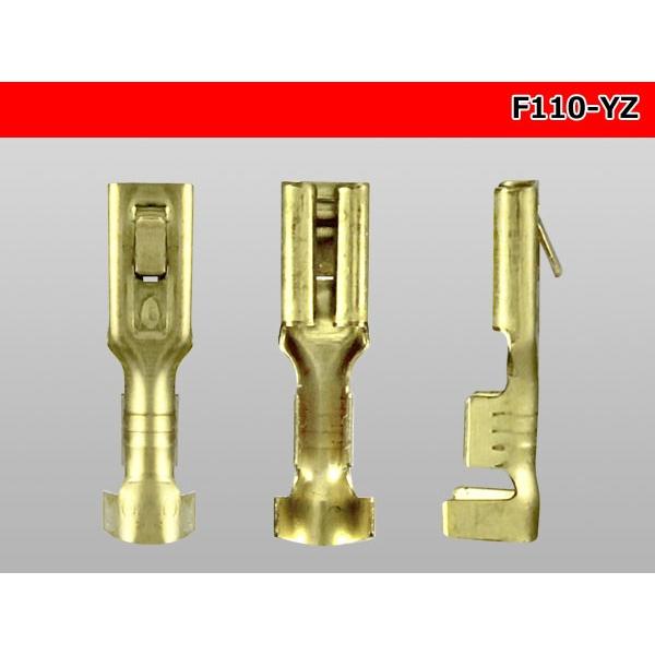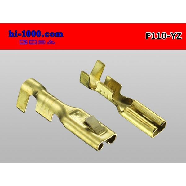 矢崎総業製110型Fターミナル非防水/F110-YZ「110型コネクタ非防水-矢崎110型(ロック無)シリーズ」のF側に対応するものとなります■メーカ:矢崎総業■材質:黄銅■適用電線:0.5mm2〜1.25mm2別シリーズ端子F110とは、突起の横幅が異なりますのでご注意下さい。