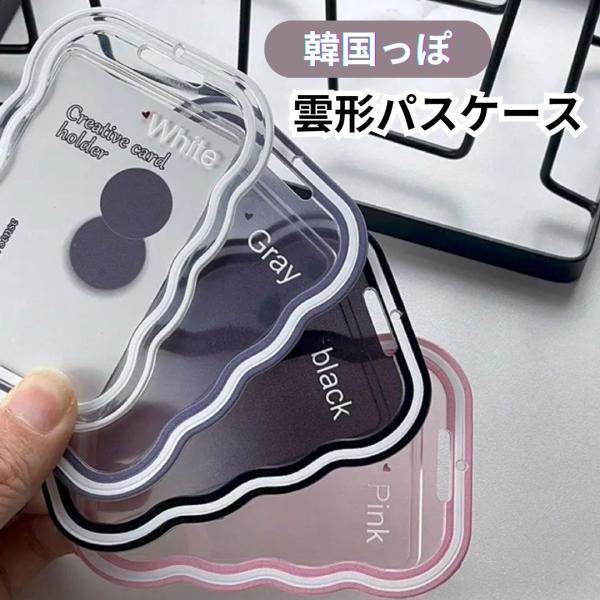 雲形パスケース カードケース ICカード 定期入れ カードキー ケース カード収納 透明 クリア キーホルダー ストラップ付き 柔らかい 可愛い お洒落 ハイハイ