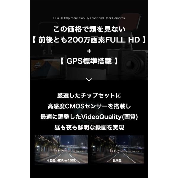 入門機 ドライブレコーダー 前後 2カメラ 前後カメラ GPS 200万画素 フルHD高画質 SDカード 常時 衝撃録画 1年正規保証 爆買 Hdr-w100L