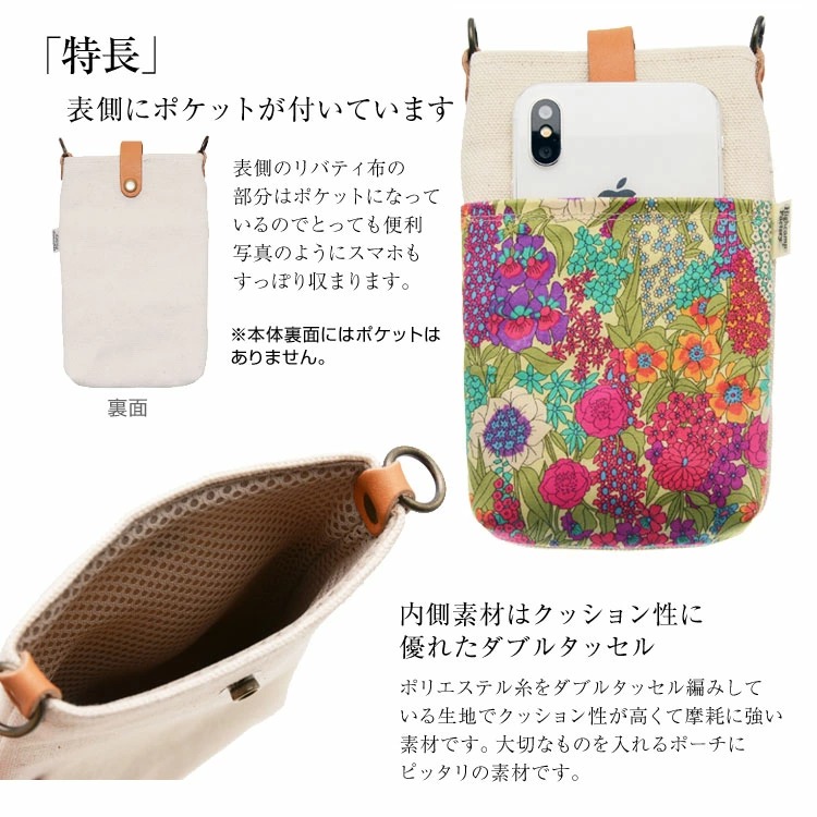スマホポーチ スマホショルダー ポシェット ショルダー ポーチ 小物入れ 斜め掛け ストラップ リバティ キアラ 倉敷帆布 iphone おしゃれ かわいい 日本製