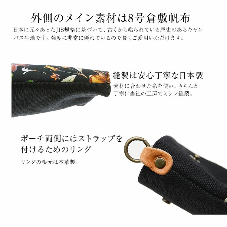 HIGHCAMP リバティ生地と倉敷帆布を使ったスマホポーチ Floral Eve - フローラルイブ -