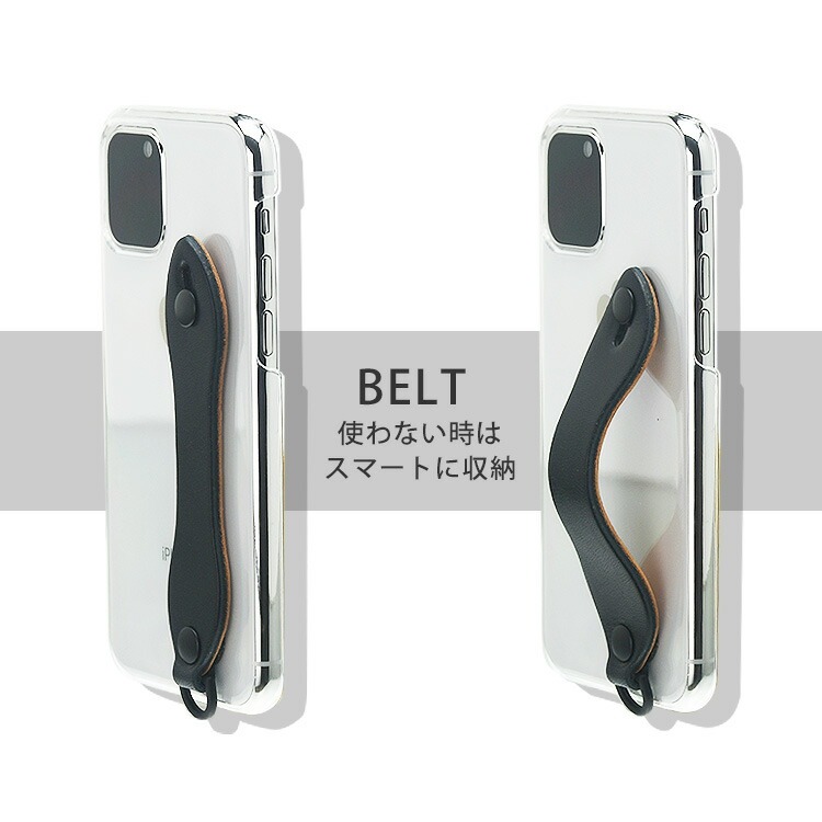 ベルトは落下防止に役立つだけでなく、スタンドとしても使用できる便利な2way仕様です。