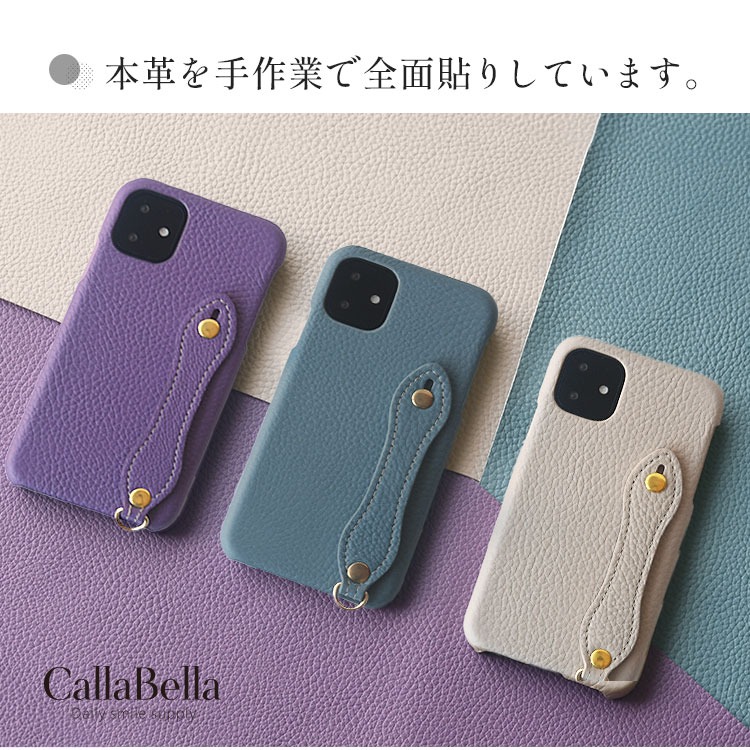 スマホカバー スマートフォンケース 携帯ケース 携帯カバー 背面 本革 レザー ベルトリング ベルト付き バンド付き 指掛け 指かけ 落とさない 紛失防止 レッド ピンク イエロー ライトグリーン ターコイズ ブルーグレー ネイビー パープル グレージュ ベージュ ホワイト 大人可愛い かわいい かっこいい おしゃれ くすみカラー シンプル 誕生日 母の日 プレゼント メンズ レディース ブランド 手作り ハンドメイド 日本製 ポイント消化 爆買 ハイキャンプ CallaBella