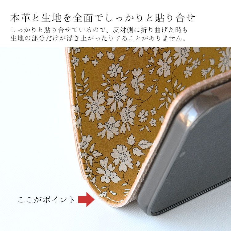 おしゃれでかわいいLibertyFabric(リバティファブリック)と栃木レザー使用した多機種対応スマホケース。