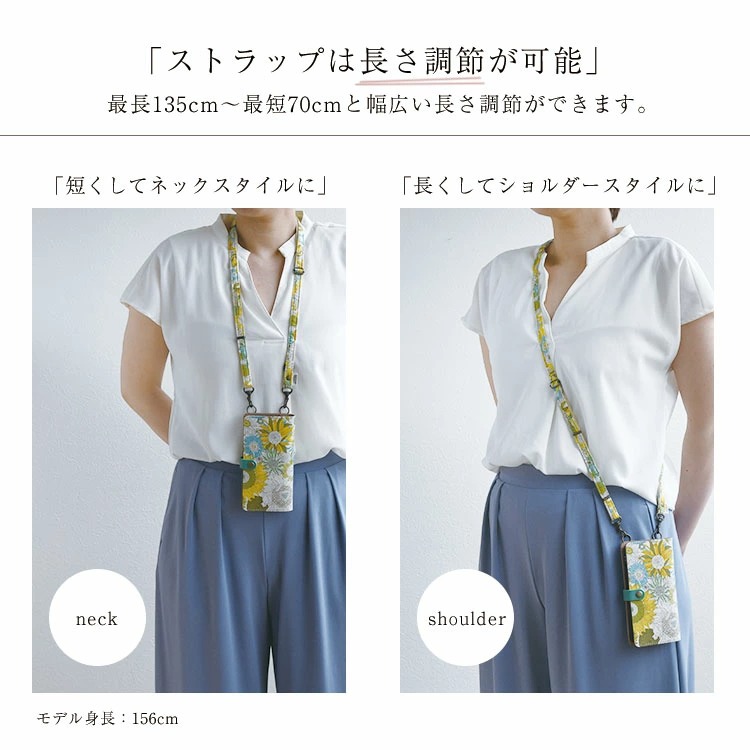全機種対応 スマホカバー 携帯ケース 携帯カバー ショルダーストラップ ネックストラップ 肩かけ カード収納 カードポケット 左利き 落下防止 おしゃれ おすすめ 大人可愛い 大人女子 手ぶら女子 くすみカラー 日本製 女性 レディース ギフト 誕生日 クリスマス 母の日 プレゼント ハンドメイド ブランド ハイキャンプ リバティ生地 Liberty ポイント消化 爆買