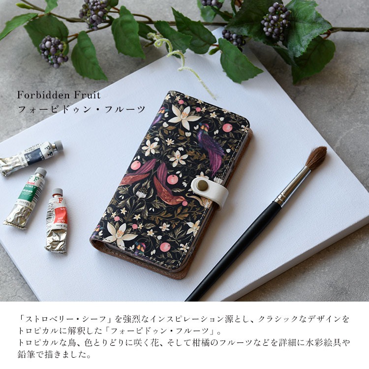 スマホケース 多機種対応 手帳型「リバティ・Forbidden Fruit フォービドゥン・フルーツ」