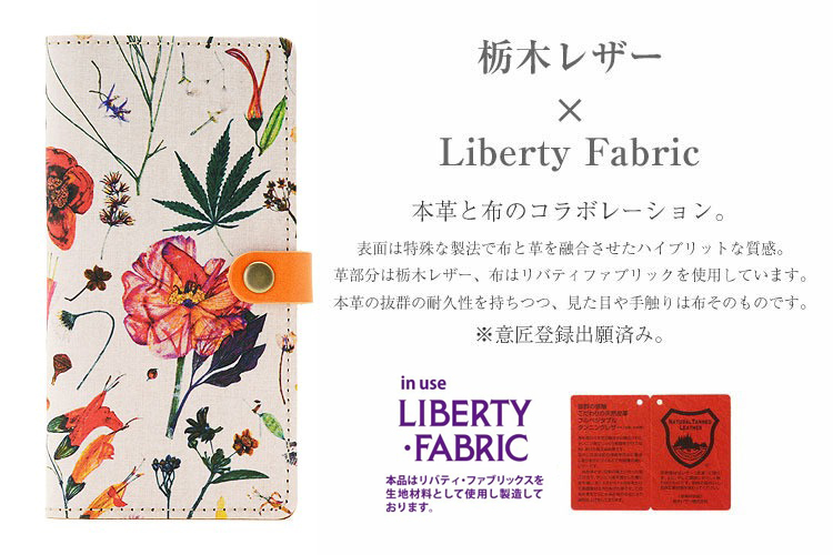 おしゃれでかわいいLibertyFabric(リバティファブリック)を使用したスマホケースです。