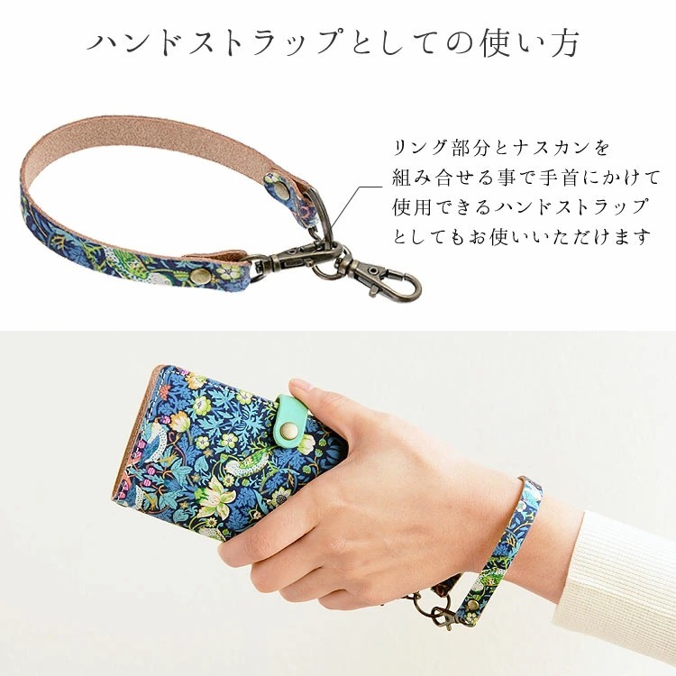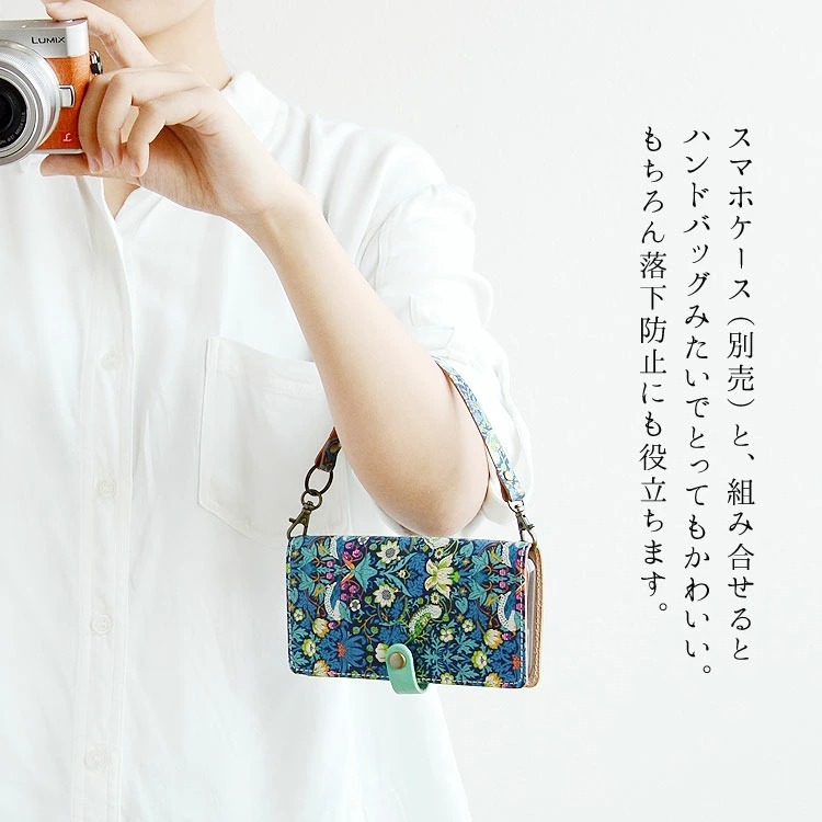当店で販売している手帳型スマホーケースと合わせてかわいい、リバティハンドルストラップです。