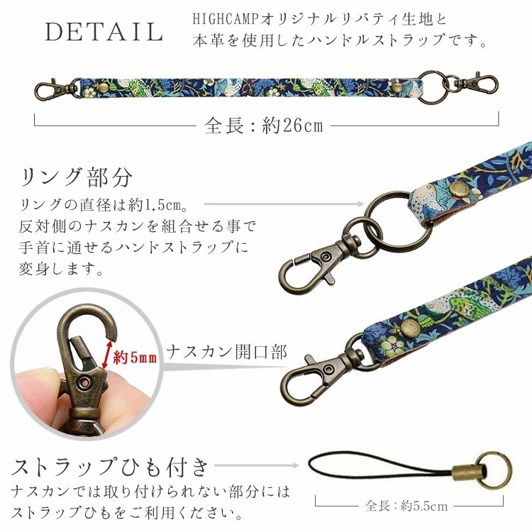 おしゃれでかわいいリバティの、HIGHCAMPオリジナルハンドルストラップ。