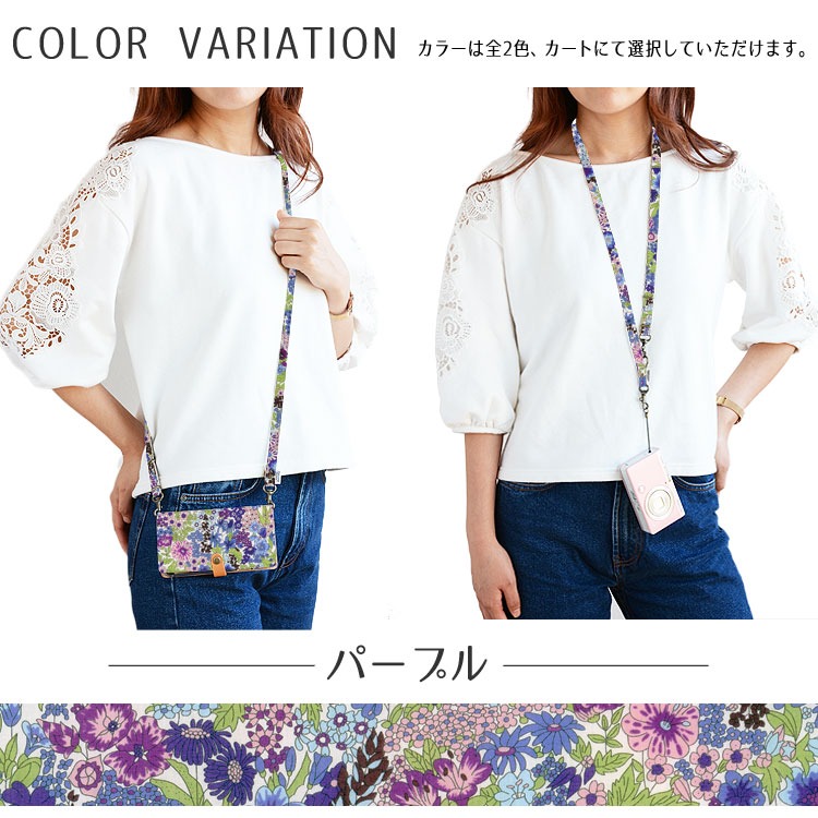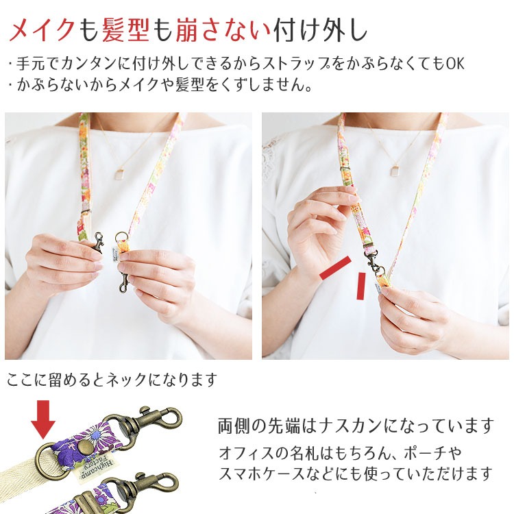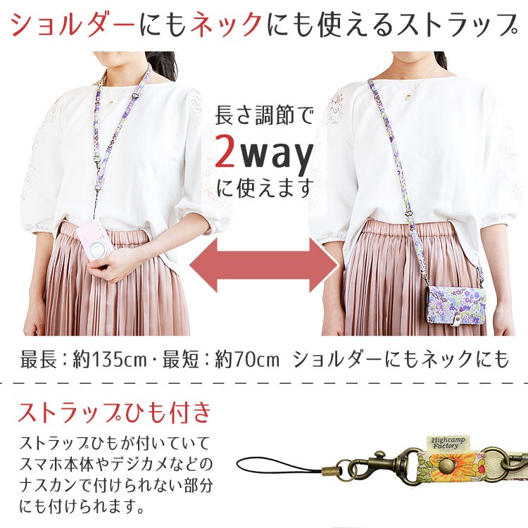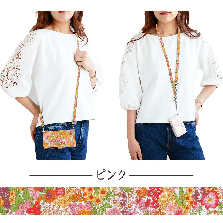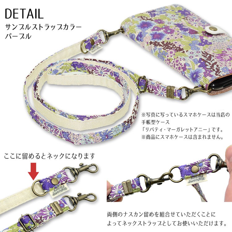スマホストラップ 2way ネックストラップ ショルダーストラップ 首かけ 肩かけ 斜めがけ 長さ調節 リバティ マーガレットアニー iphone カメラ 落下防止 日本製
