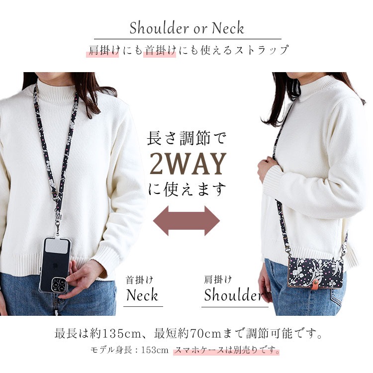 スマホストラップ スマホショルダー 2way ショルダーストラップ ネックストラップ 長さ調整 肩掛け 首掛け 斜めがけ 単品 リバティ マロリーネオン 落下防止