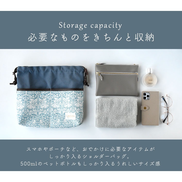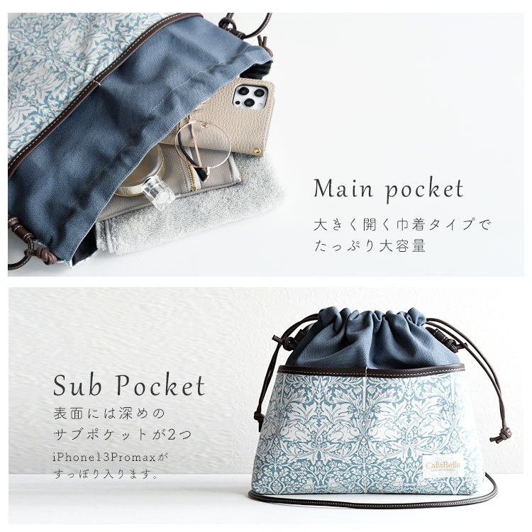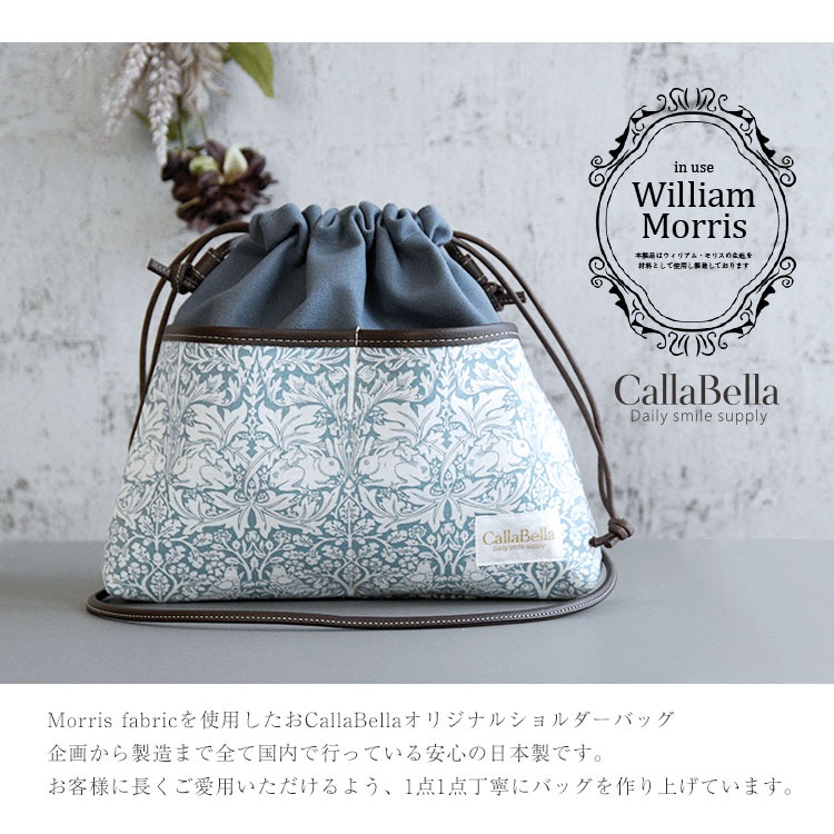 巾着バッグ ショルダーバッグ ハンドバッグ 2way 肩掛け 斜め掛け ショルダーポーチ ポケット レザー おしゃれ CallaBella モリス生地 ブレアラビット