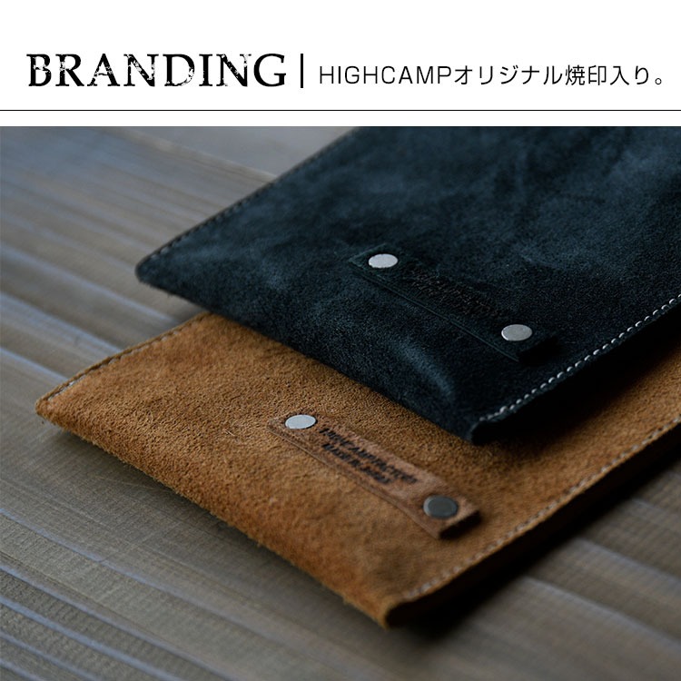 この製品に使用されているラフアウトレザーはHIGHCAMPの製品の為に姫路のタンナーで1枚1枚丁寧に起毛されたオリジナルのラフアウトレザーです。