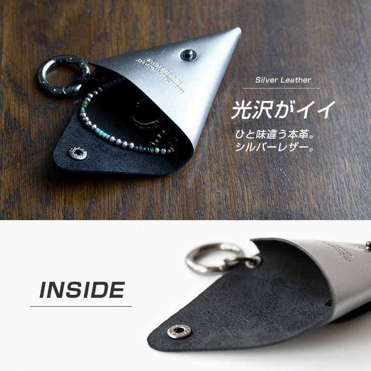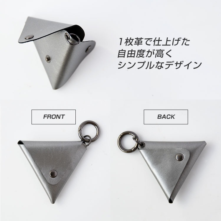 コインケース 小銭入れ シルバーレザー 本革 小物入れ ミニ財布 リング付き 三角 マルチポーチ ミニ 携帯 スリム コンパクト ミニポーチ アクセサリーケース