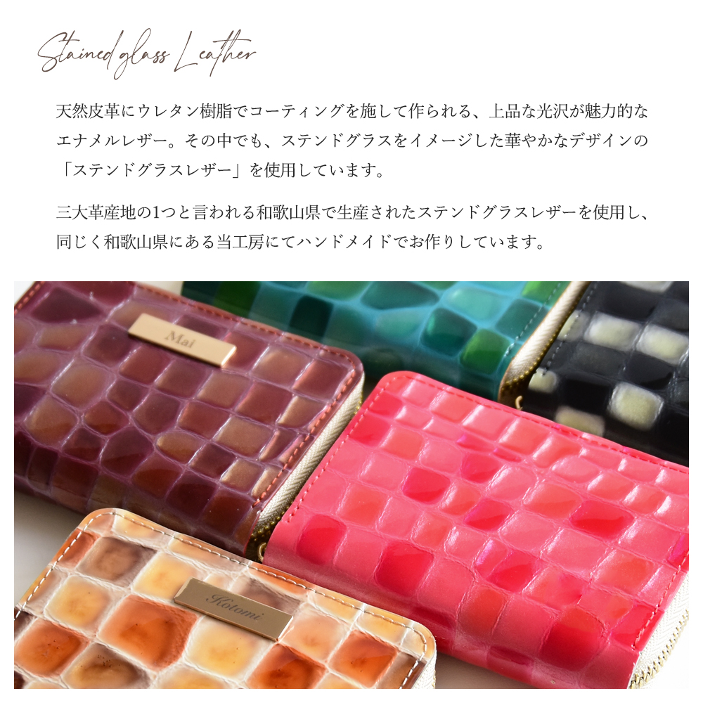 ステンドグラスレザー レディース 財布 本革 名入れ対応 ラウンドファスナー 大容量 カード収納