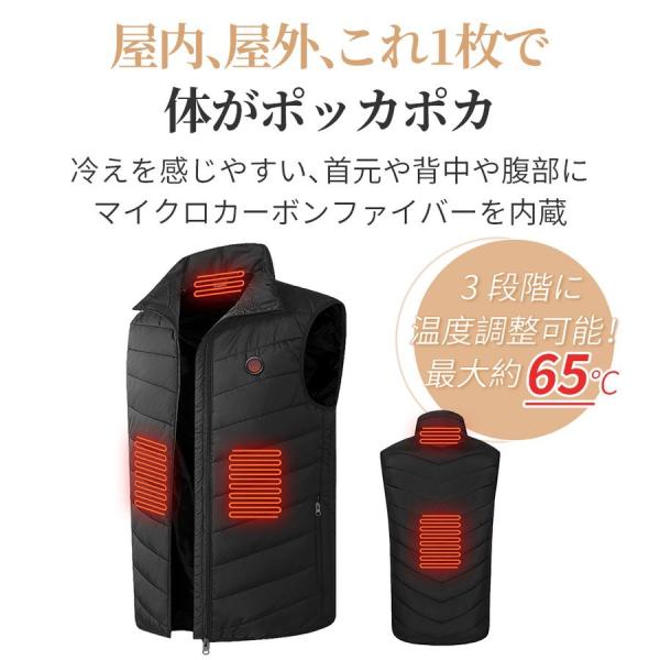 「在庫処分」電熱ベスト ヒーターベスト 電熱ジャケット バッテリー給電 3段階温度調整 加熱ベスト 水洗い 男女兼用 防寒ベスト アウトドア 加熱ジャケット