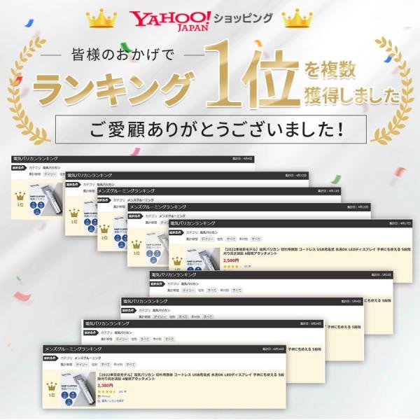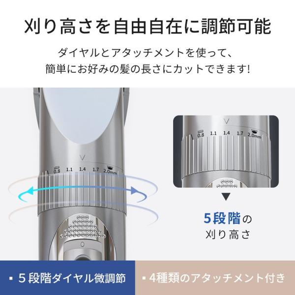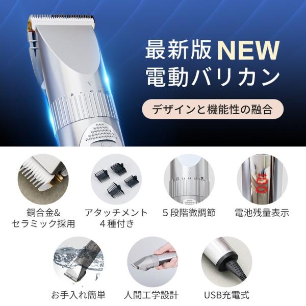 【最新モデル】電気バリカン 切れ味抜群 コードレス USB充電式 水洗OK LEDディスプレイ 子供にも使える 5段階刈り高さ調節 4種類アタッチメント