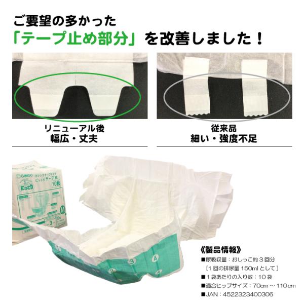 大人用紙おむつ ひまわり にっこりテープ Mサイズ マジックテープタイプ 10枚入り 介護用オムツ おしっこ約3回分