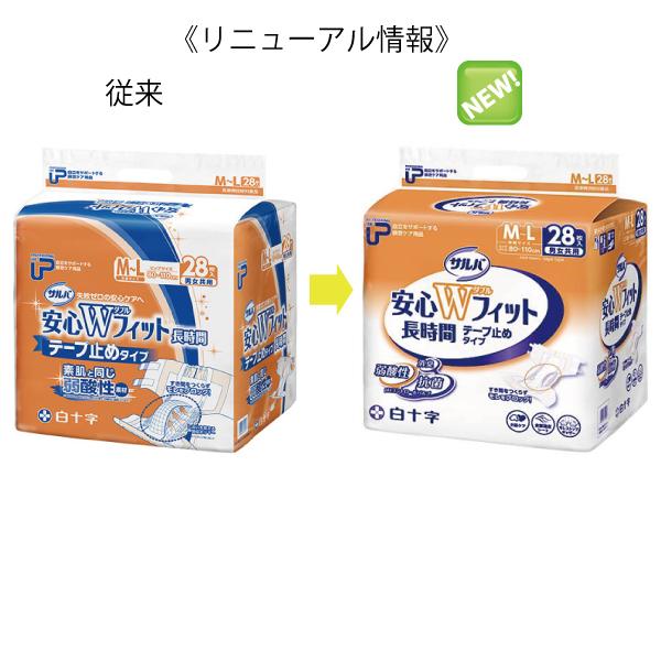 大人用紙おむつ 白十字 P.Uサルバ安心Wフィット テープタイプ 中間M-Lサイズ ケース(28枚×2袋) 介護用オムツ (おしっこ約5回分)