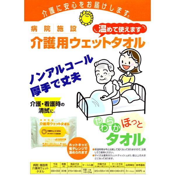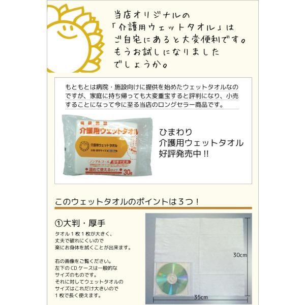 自社商品 ひまわり 介護用ウェットタオル (やわらかホットタオル)小ケース(30枚入×6袋)”温めて使えます”H00001