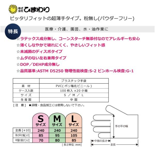 ビニール手袋 うす型タイプ パウダーフリー Sサイズ 小箱100枚入 使い捨て PVC プラスチック 手袋 グローブ 介護 介助 自社商品 ひまわり