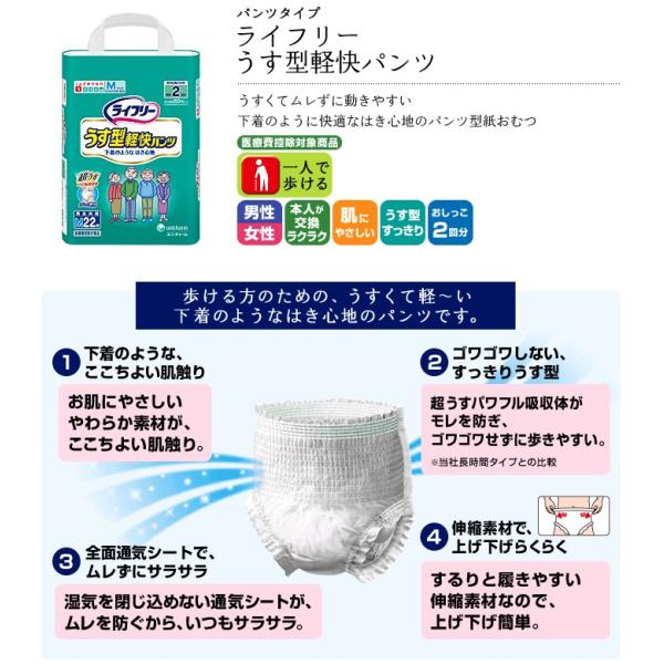 大人用紙おむつ ライフリー うす型軽快パンツ Mサイズ ケース(22枚入×4袋) 紙 パンツ オムツ 介護用品 大人用紙おむつ G02111