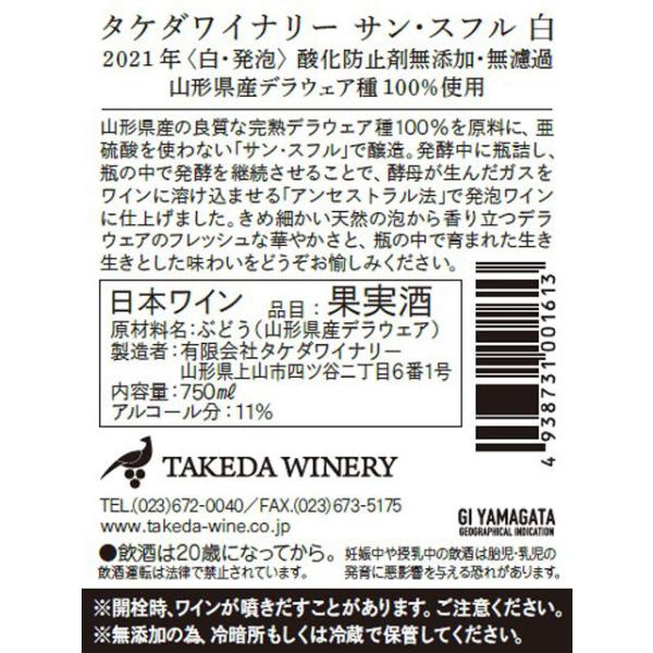 タケダワイナリー サン・スフル 白(発泡) 山形県産デラウェア種100% 750ML山形県