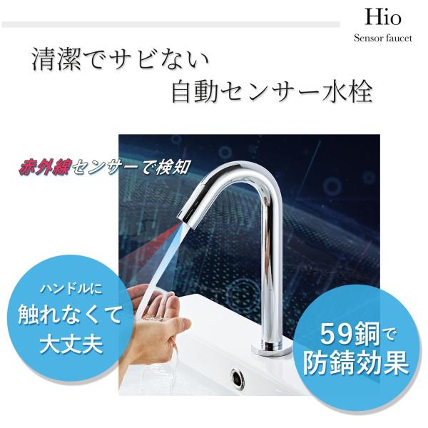 ・【Hio 自動センサー水栓】センサーの検知範囲から手を離せば自動で水が止まり、無駄な水を流すことなく節水できます。また、センサーは4本の単三電池(別売)で作動します。