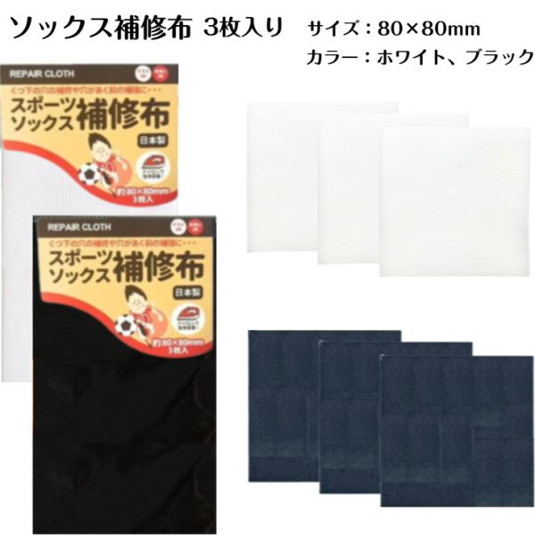 スポーツソックス 補修布 アイロン簡単接着 貼り付け簡単 くつ下 補修 補強 穴の補修 日本製 3枚入