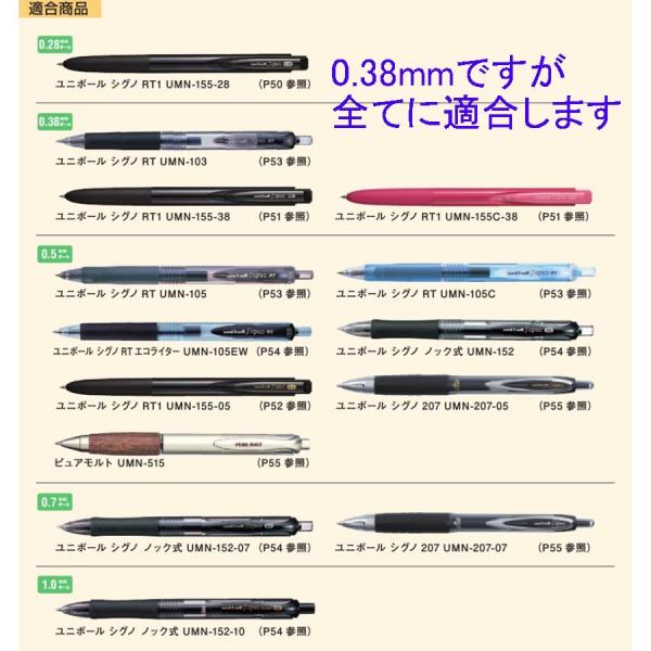 画像2の全ての軸に対応できます。是非0.38mmの書き味を試して下さい。替え芯で一番人気の0.38mmです。